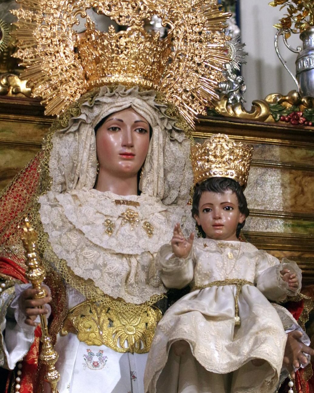 El especial cuidado en la elaboración de esos tocados o rostrillos se ha visto ligado a otro hecho; cada vez más optar por la plata en la composición general de la vestimenta. Esta estética la ha presentado titulares como Candelaria, integrando también el dorado, (Medinaceli), por su vestidor Pedro Gómez; Aurora (Aurora), Javier Nieto; Carmen Coronada (Carmen de El Perchel), por el granadino Álvaro Abril; tanto Lágrimas y Favores como Mayor Dolor (Fusionadas), por López; o Monte Calvario (Monte Calvario), por Guillermo Briales, quien este año en sus imágenes apostó más por los encajes. Así como, buscó “la austeridad en el tipo de tocado, más natural. Siempre con tejidos de calidad”.